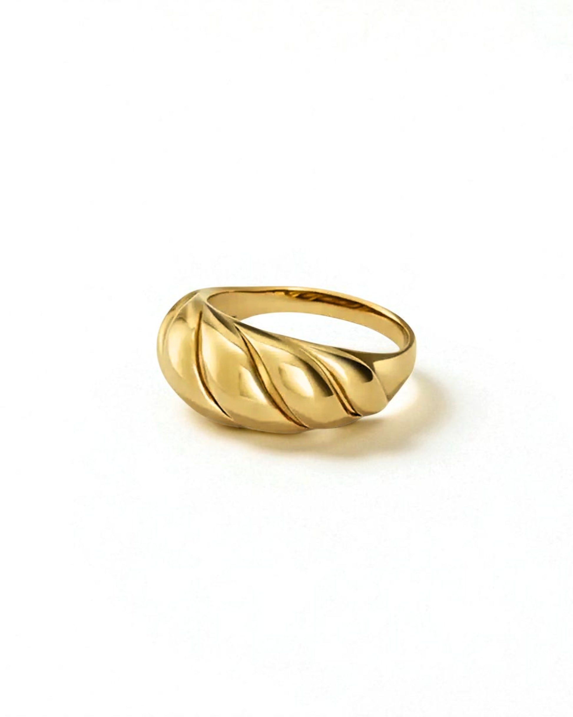 The Ondulée Ring is a bold, sculptural masterpiece that captures movement in solid form, expertly finished with an 18K gold-plated finish. Defined by its generous, rounded volume, the ring features fluid, undulating grooves that perfectly follow the curve of the finger. This dynamic, channeled texture plays with light, creating deep shadows and high reflections for a constant, captivating luster. The Ondulée Ring is a striking yet refined statement, designed as a modern essential that embodies effortless, wave-like motion and continuous luxury.